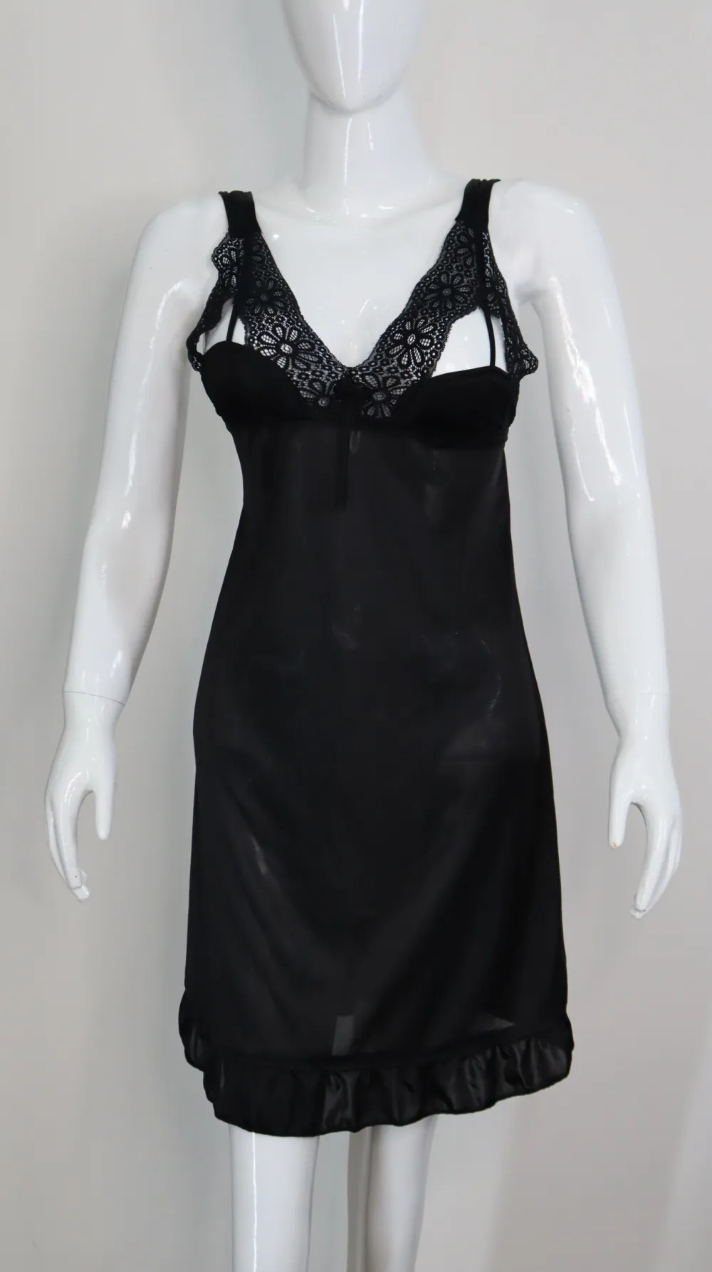 • Slip dress: Satin finish with a floral lace bodice, V-neck, wide lace straps that flatters the bust.