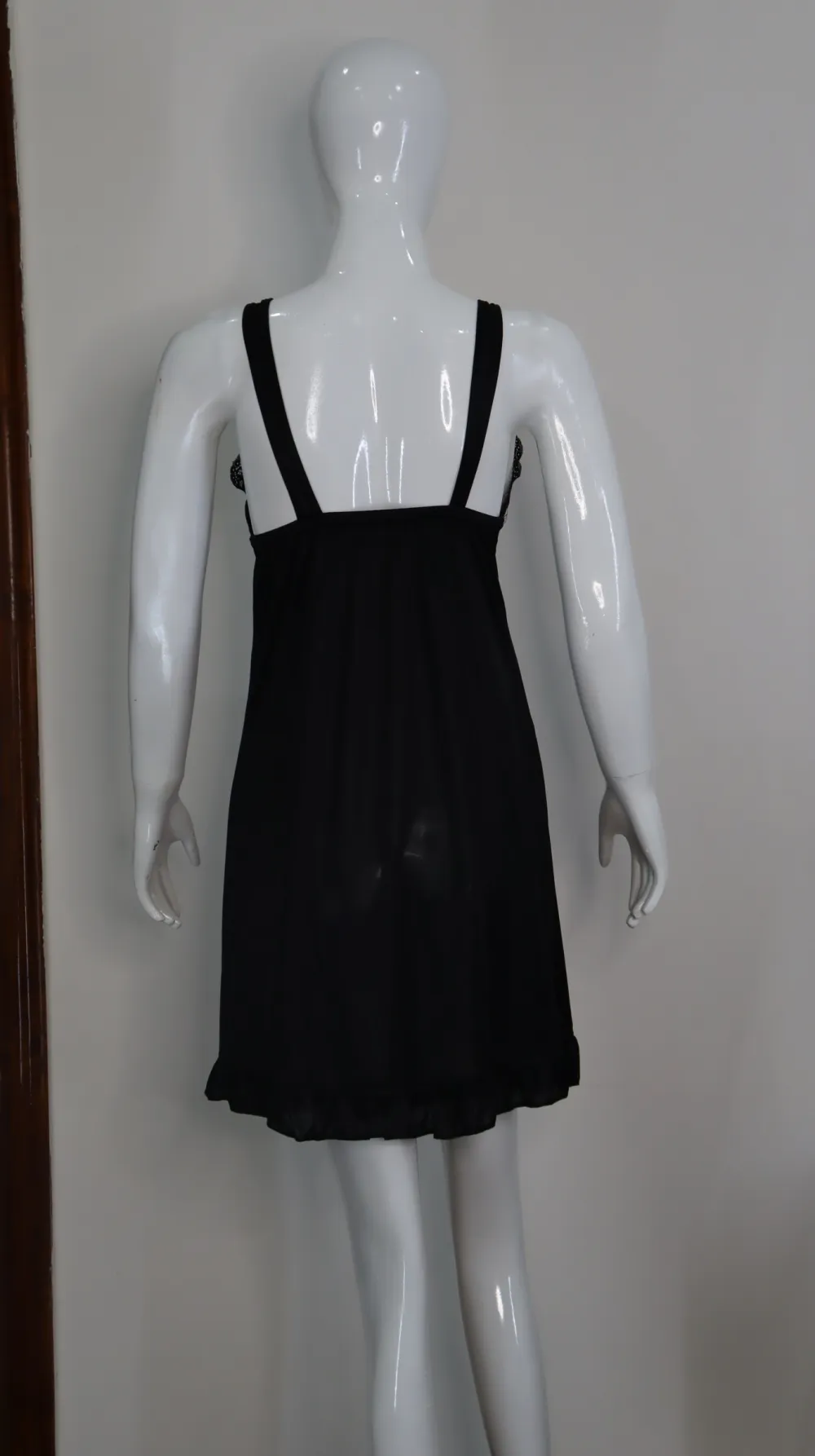 • Black color Luxury Satin 3-Piece Baby Doll Lingerie Set for Honeymoon and Nightwear