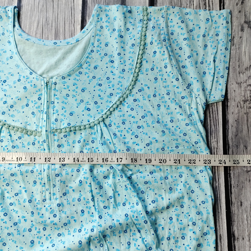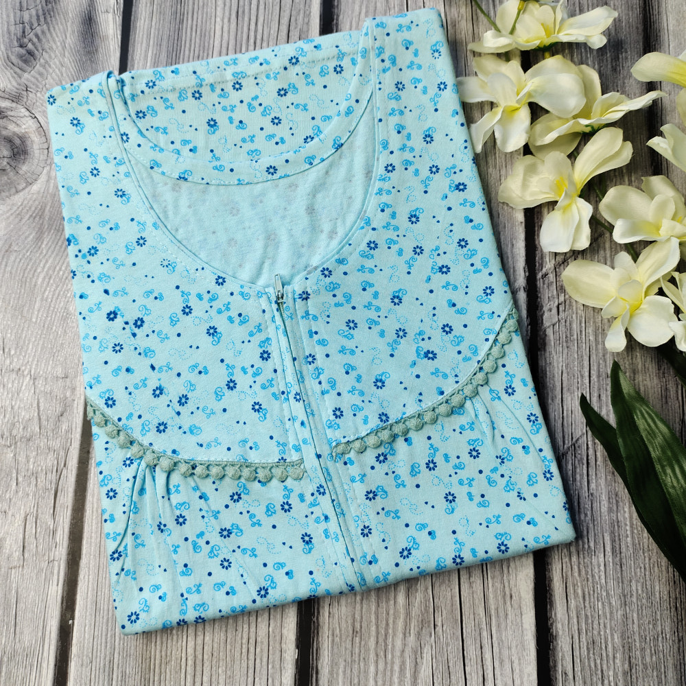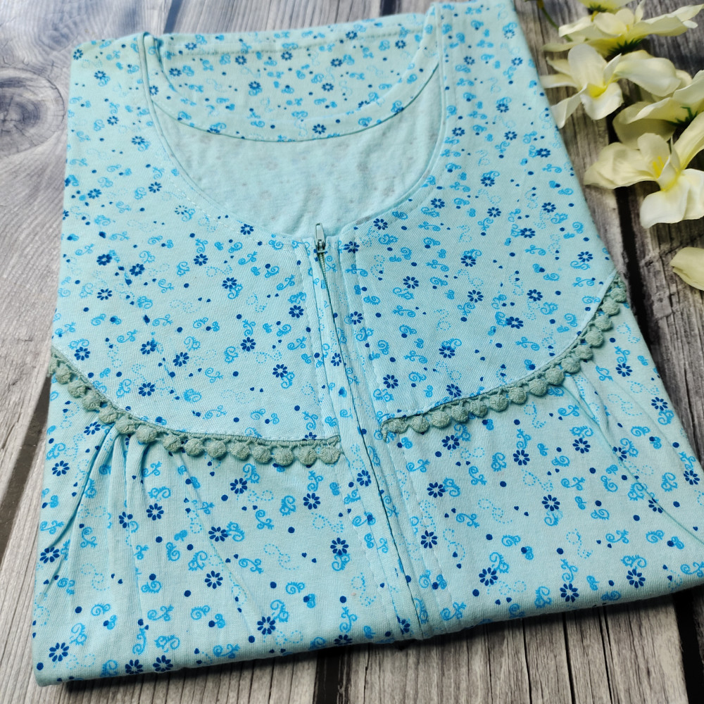 These are Super Soft & Super Comfortable Nighties. In this Two different verities are available, one is with front zip and another one is without zip. Beautiful lace detailing on both. Size free Large up to XXL.