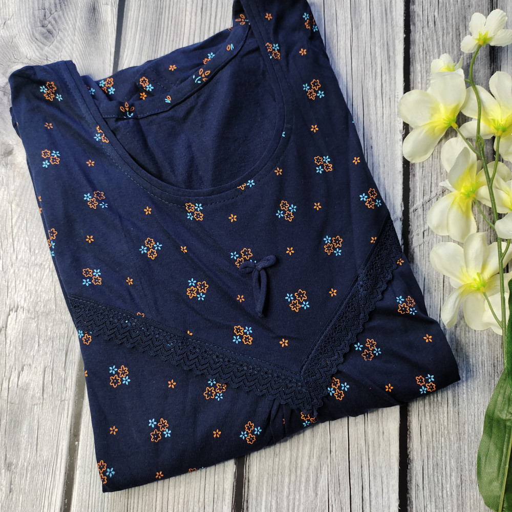 These are Super Soft & Super Comfortable Nighties. In this Two different verities are available, one is with front zip and another one is without zip. Beautiful lace detailing on both. Size free Large up to XXL.