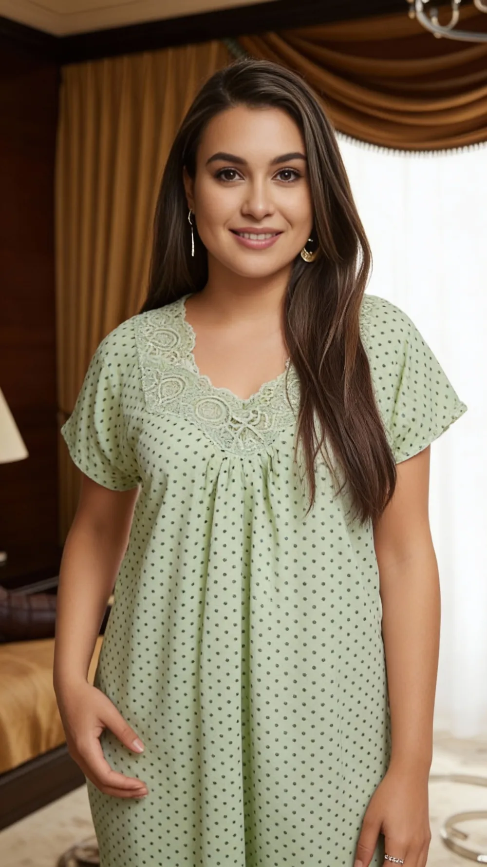 Whether you're winding down after a long day or enjoying a quiet morning, this night gown combines style and serenity in every thread. A must-have for women who appreciate beauty in the everyday.