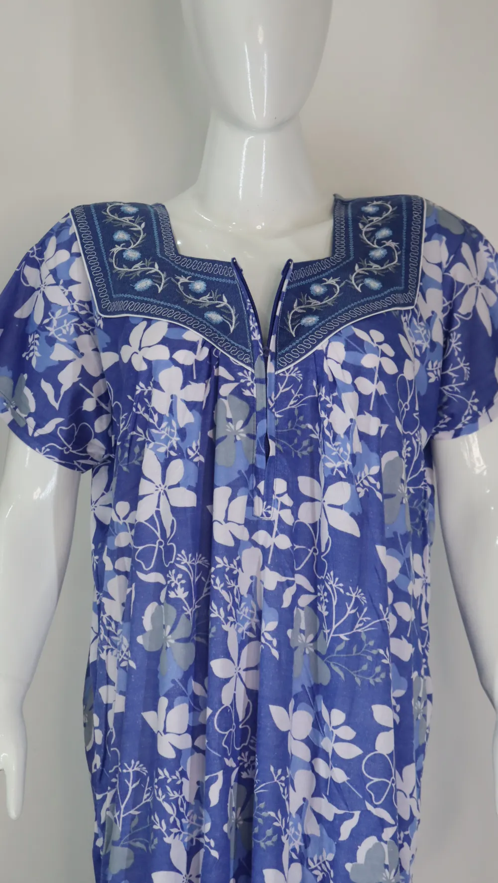 • Blue color Premium Hosiery Night Gown with Floral Elegance