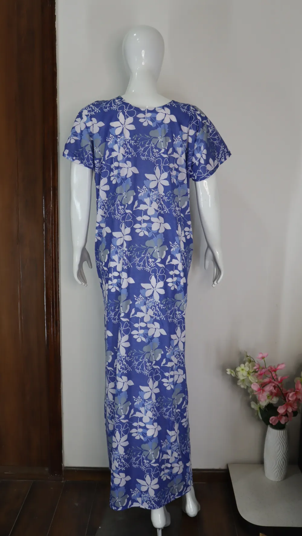 Unwind in style with our premium-quality blue floral night gown, crafted to blend comfort with timeless charm. Made from soft, breathable hosiery fabric, this gown ensures a relaxed fit while keeping you effortlessly elegant from dusk till dawn.