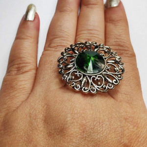 Oxidised Antique Silver tone Statement Finger ring for girls